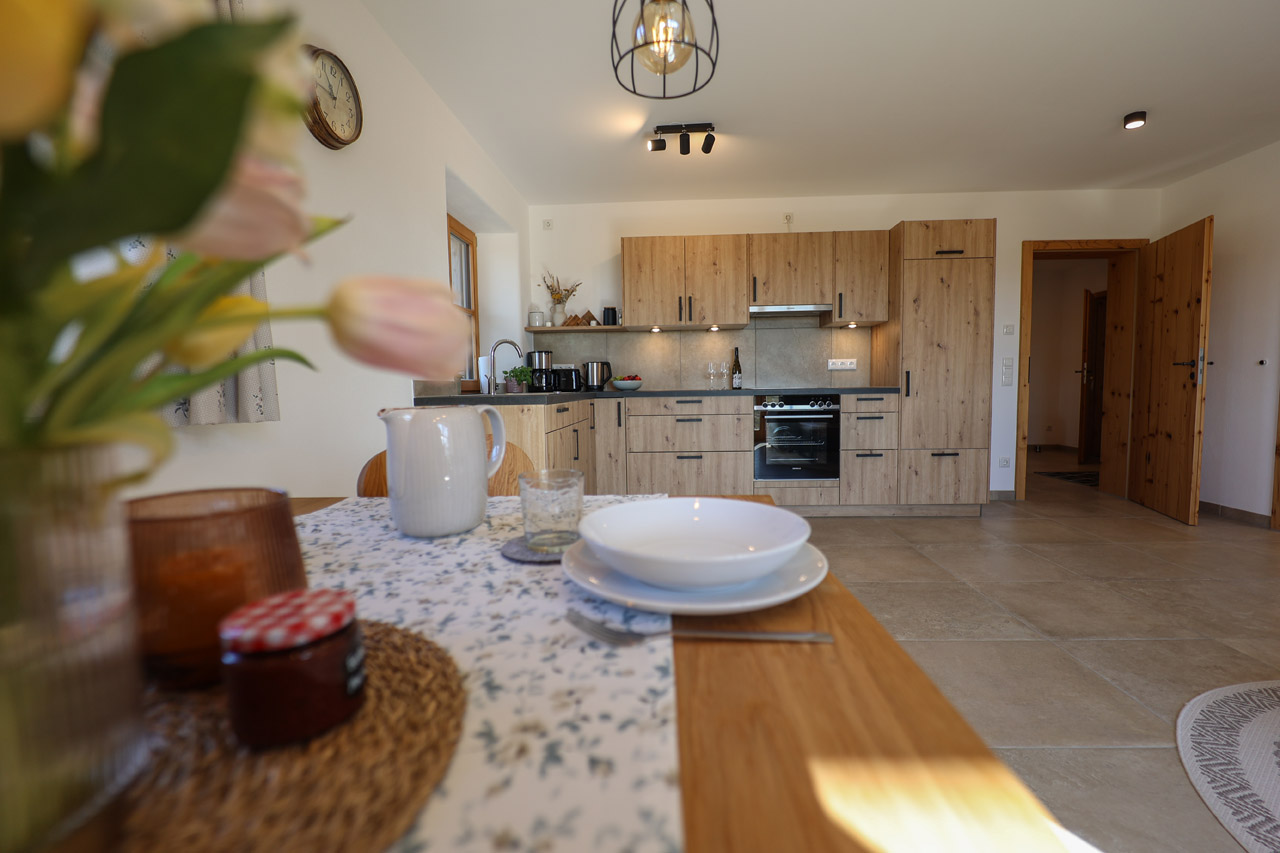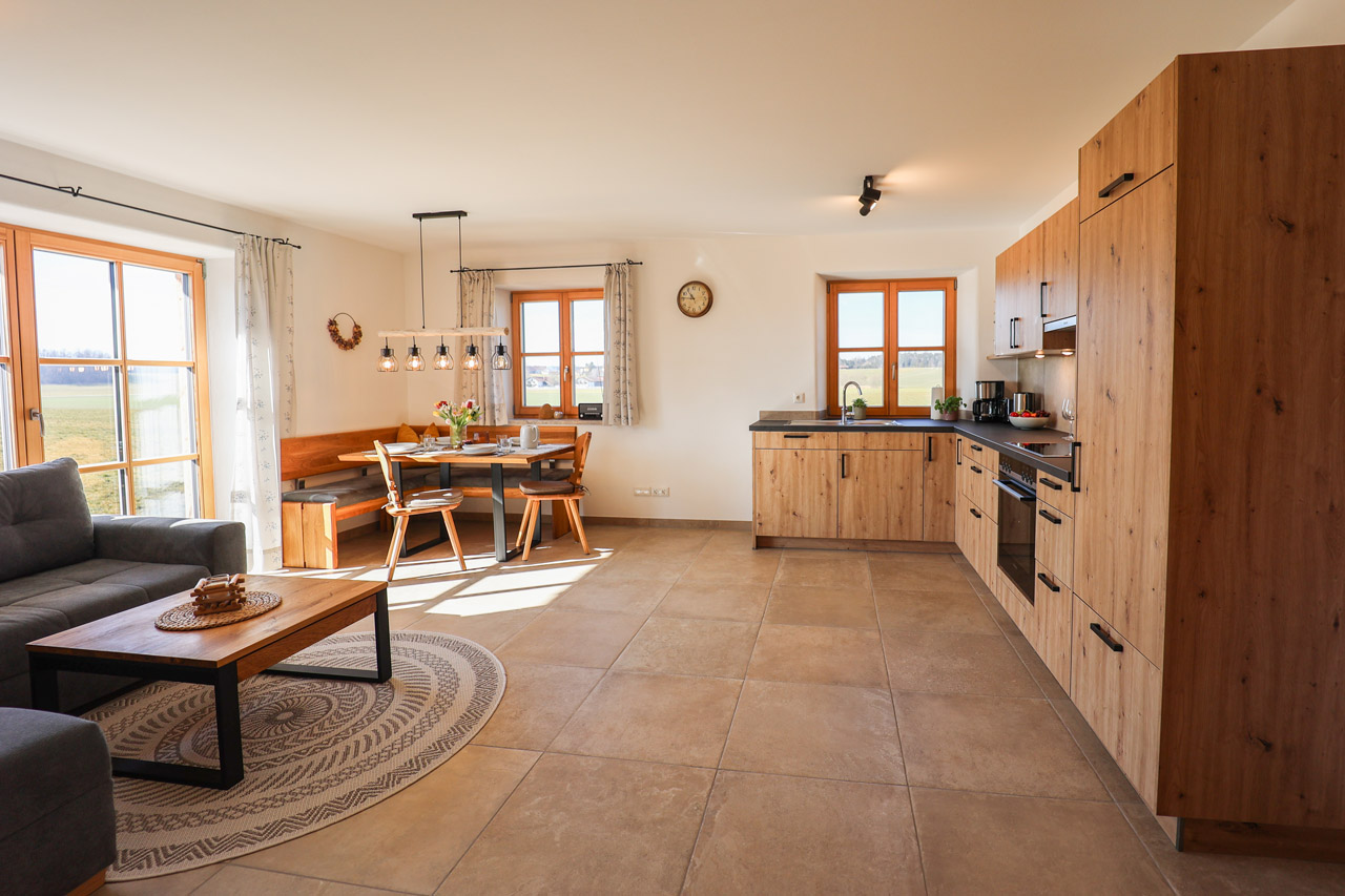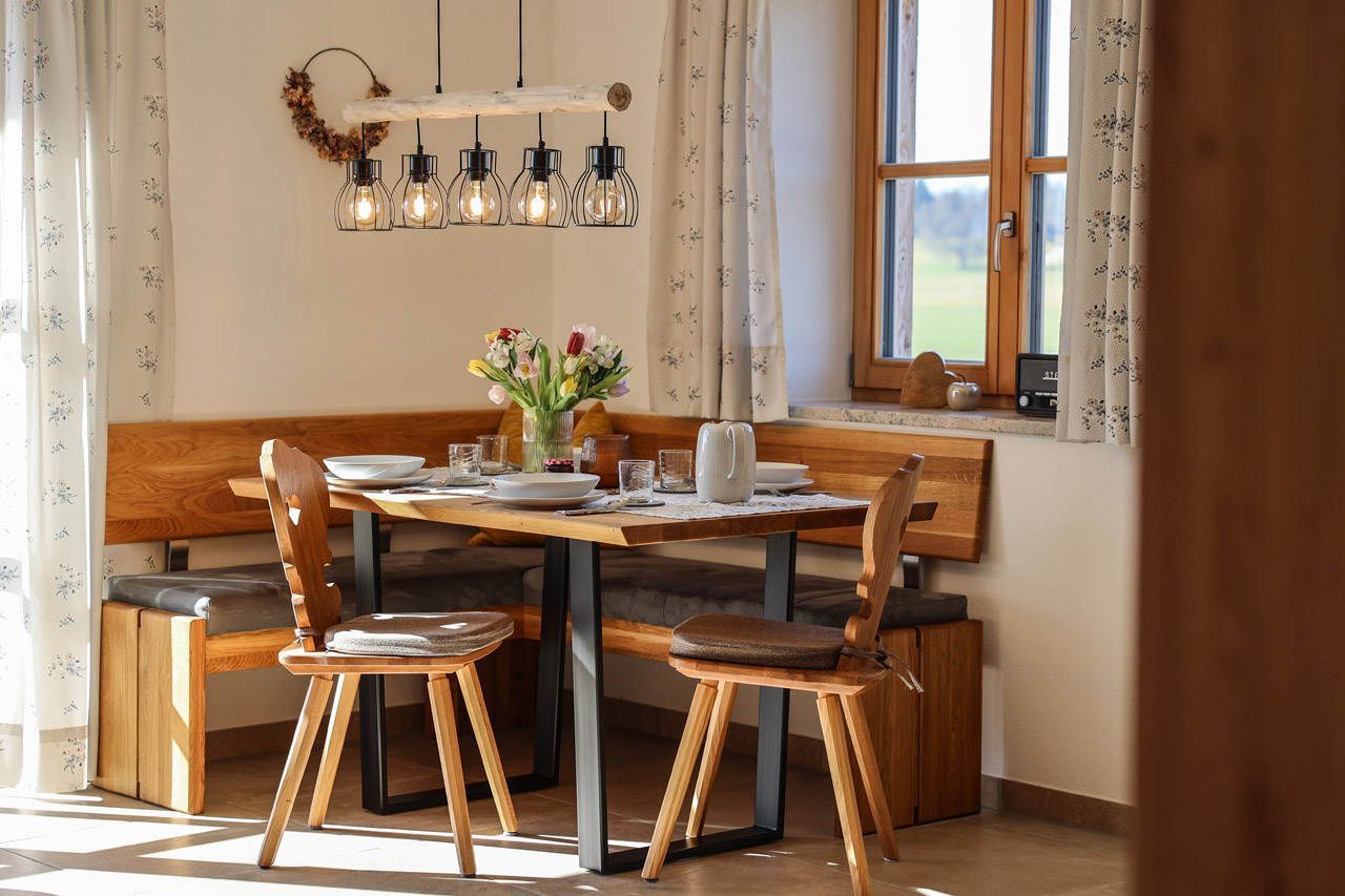Unsere neugebaute Ferienwohnung Alpenzauber, bietet mit ihrer großzügigen und komfortablen Bauweise viel Platz für die ganze Familien. Die stilvolle Vollholzmöbel- Einrichtung, eine gut ausgestattete Wohnküche, garantieren einen wohlfühlenden Aufenthalt in der bayerischen Natur. Die Ferienwohnung hat zwei getrennte Schlafzimmer und eine zusätzliche Schlafmöglichkeit auf der ausziehbaren Couch.