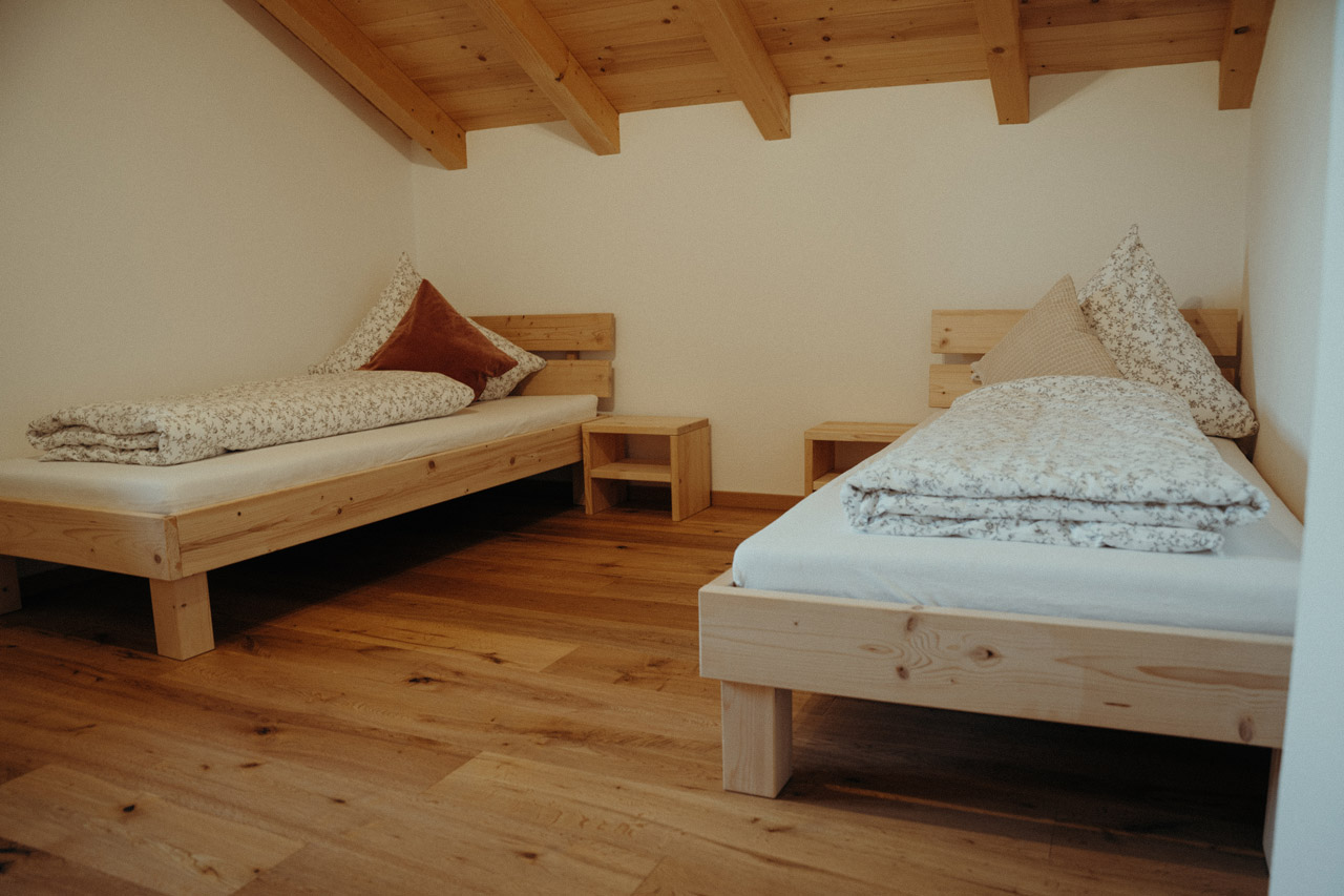 - Zwei Schlafzimmer: Elternschlafzimmer mit Doppelbett, Kinderschlafzimmer mit Einzelbett und einem Stockbett, zusätzliche Schlafmöglichkeit auf der ausziehbaren Couch im Wohnbereich